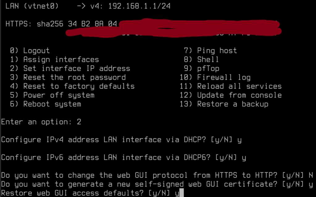 La solution, c’est de choisir l’option « 2) Set Interface IP address » sur l’écran de boot, et de choisir l’attribution d’IP par DHCP :
