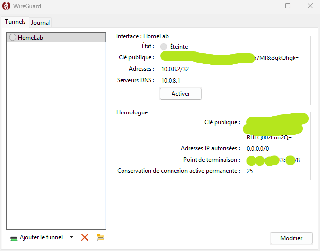 Ensuite il faut modifier la configuration de manière à indiquer le serveur Wireguard :