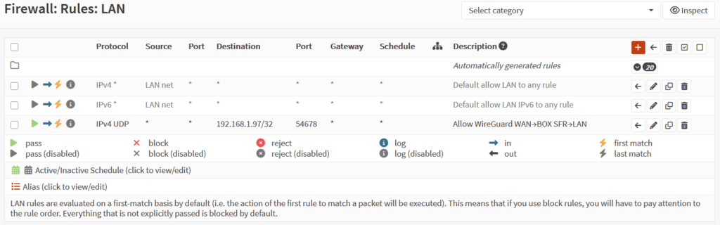 Tout d’abord sur l’interface LAN nous autorisons le traffic UDP de notre client WireGuard :